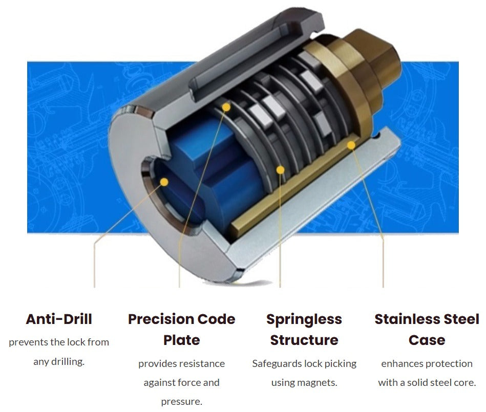 CRANNS uses the top secure disc detainer cylinder, anti-drill, pick resistant, and bump resistant.